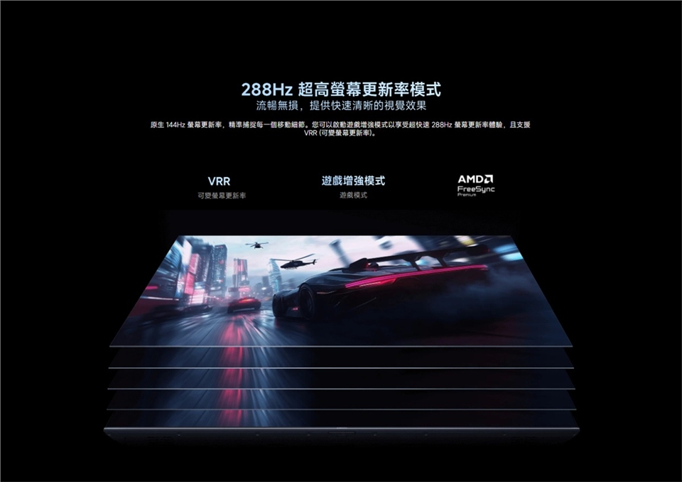 - 144Hz 螢幕更新率可確保極致順暢的視覺體驗,並將模糊現象降到最低