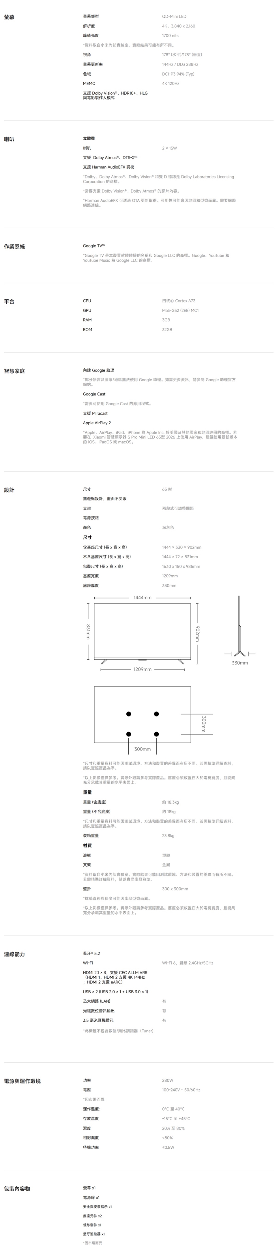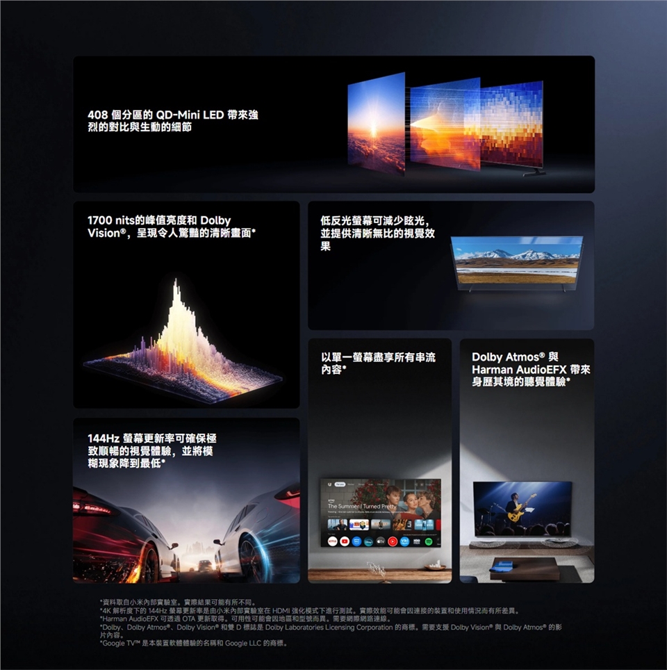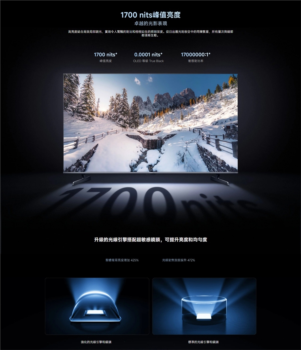 - 1700 nits的峰值亮度和 Dolby Vision®,呈現令人驚豔的清晰畫面