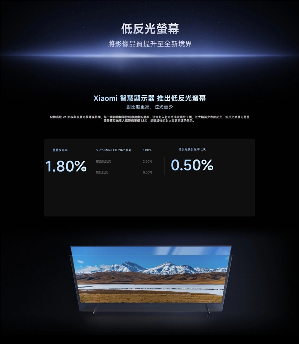 - 低反光螢幕可減少眩光,並提供清晰無比的視覺效果