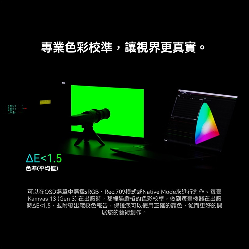 ● 專業色彩校準,Delta E<1.5高色準
