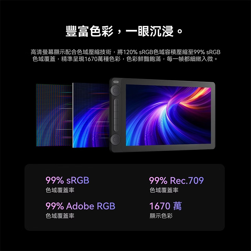 ● 120%sRGB色域,色彩豐富多彩