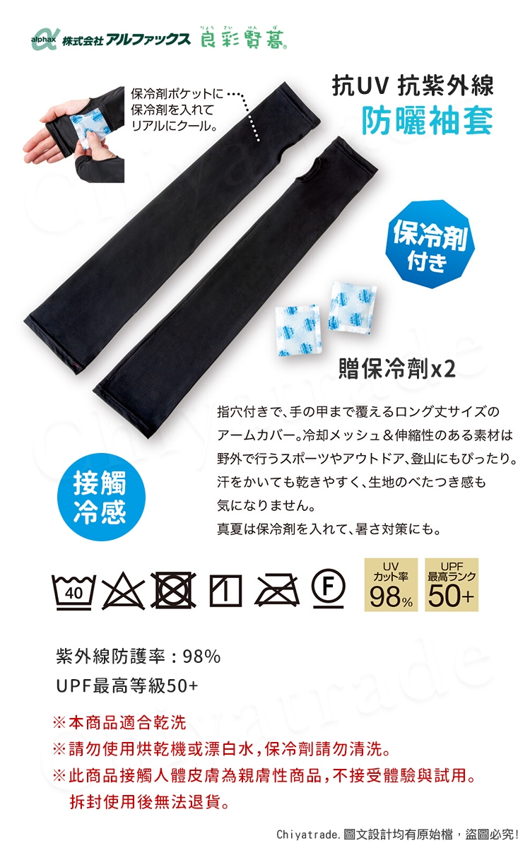 ●本商品適合乾洗,請勿使用烘乾機或漂白水,保冷劑請勿清洗。