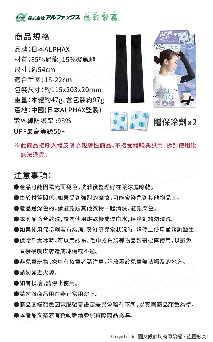 ※此商品接觸人體皮膚為親膚性商品,不接受體驗與試用。拆封使用後無法退貨。