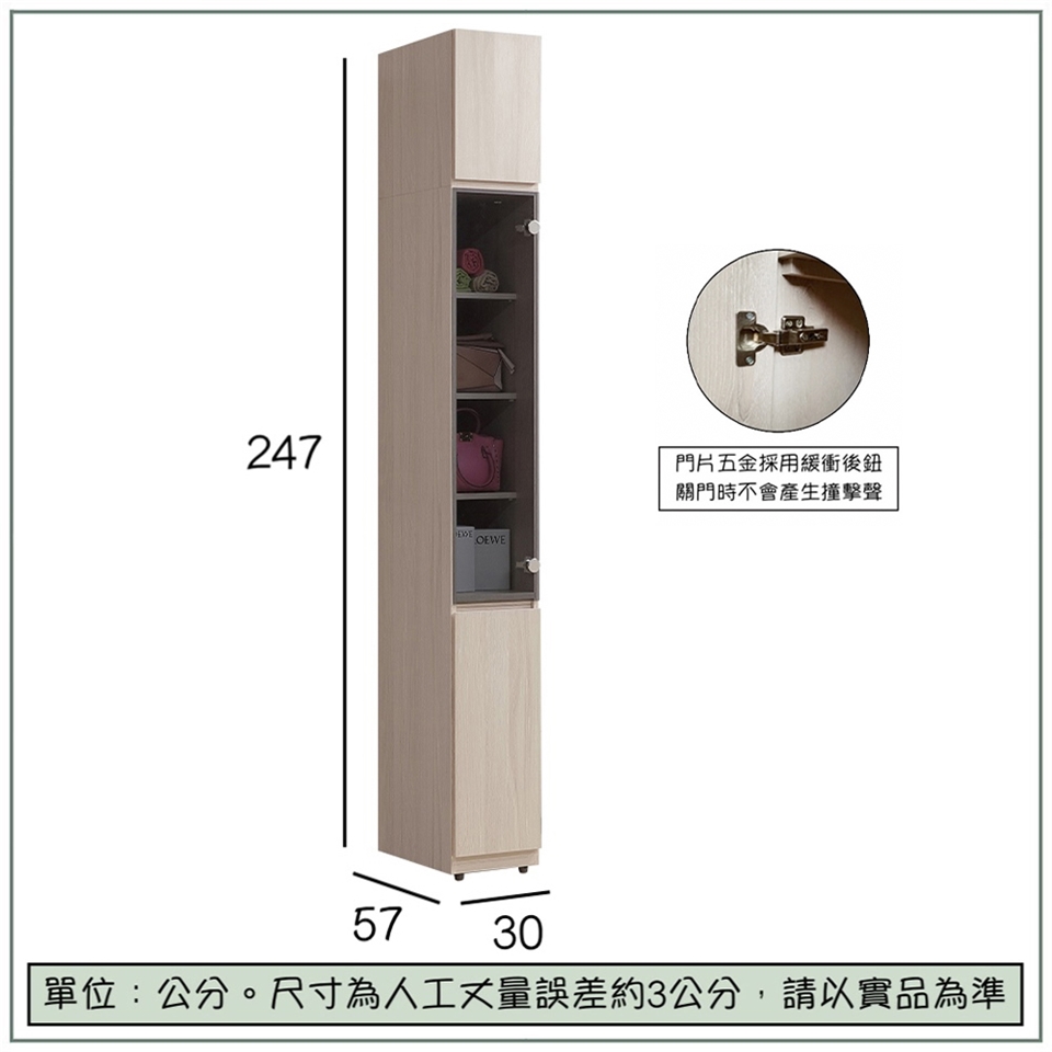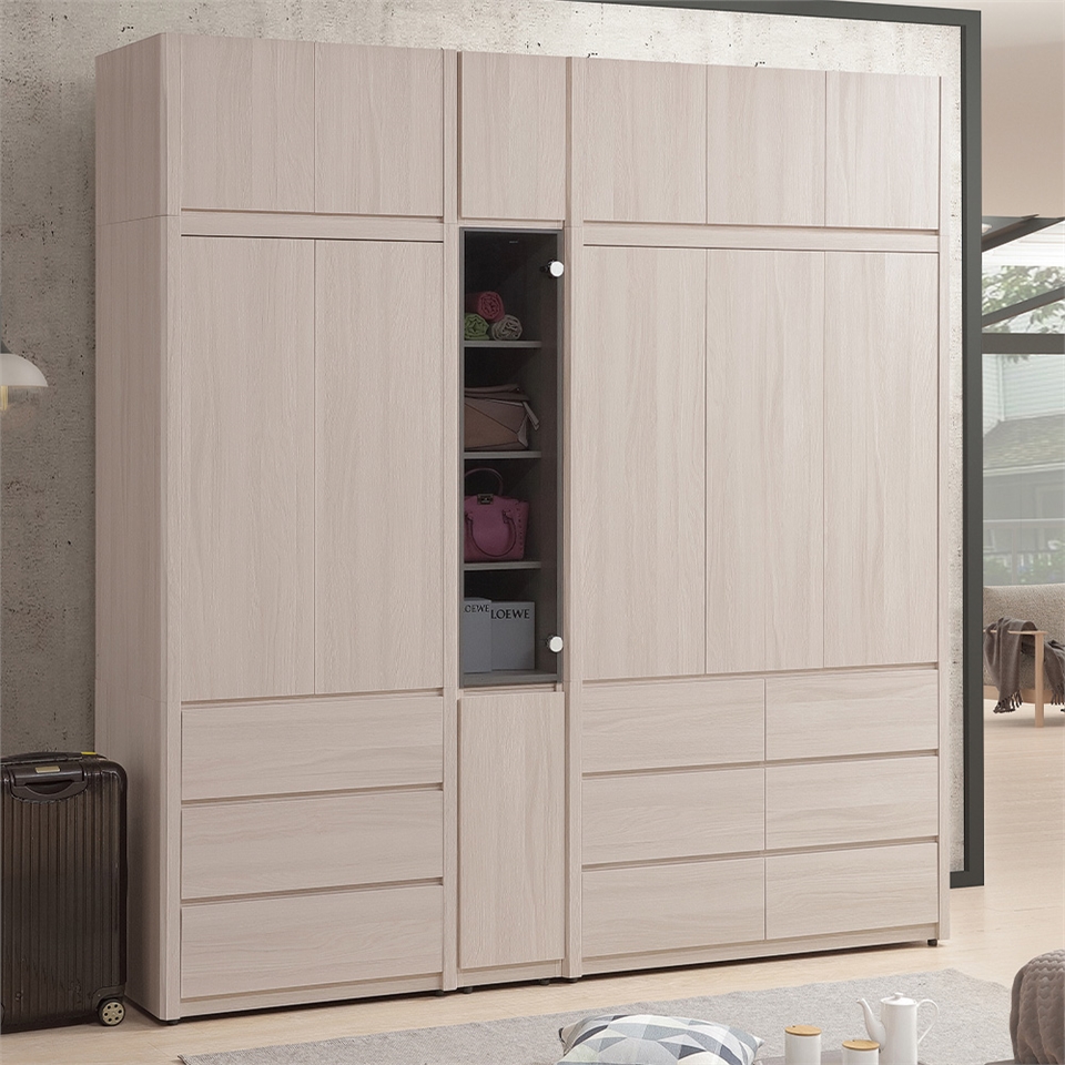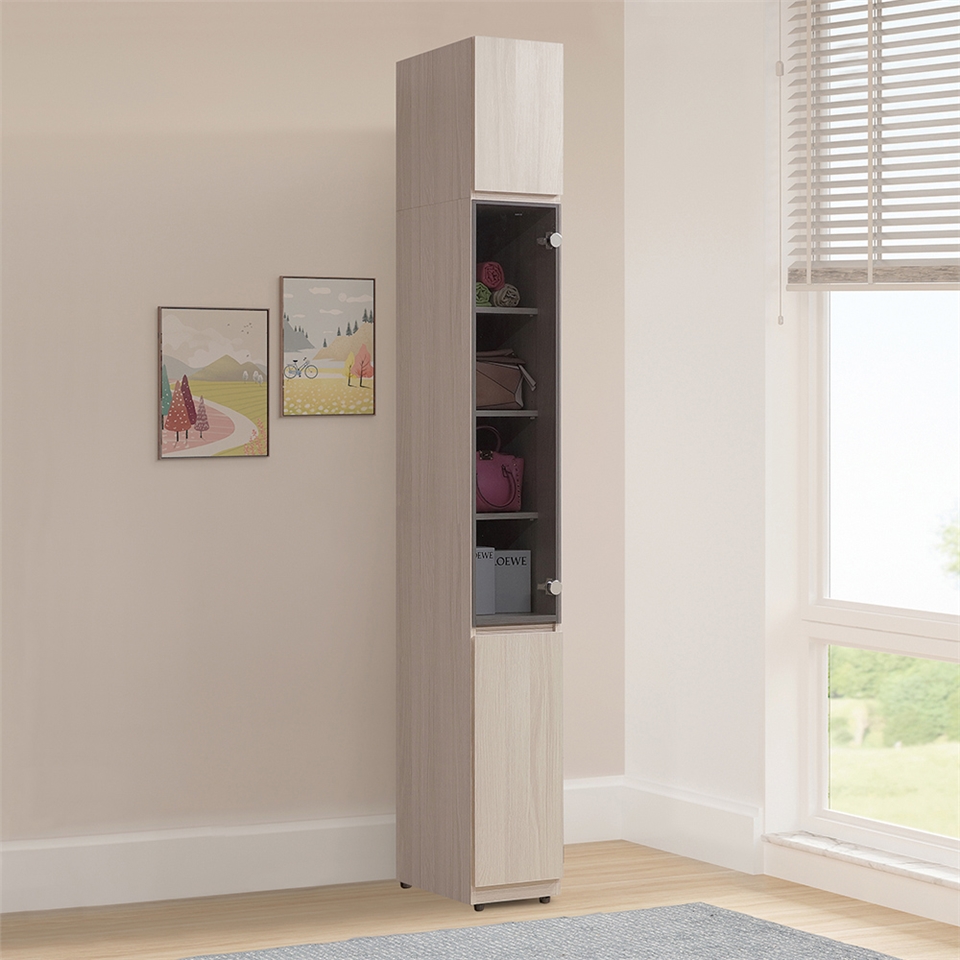 • 多功能設計:多層分隔設計,可以擺放收納盒、行李箱、鞋子等物品;玻璃門的空間可以展示珍藏的包包、飾品等,增加空間層次感。