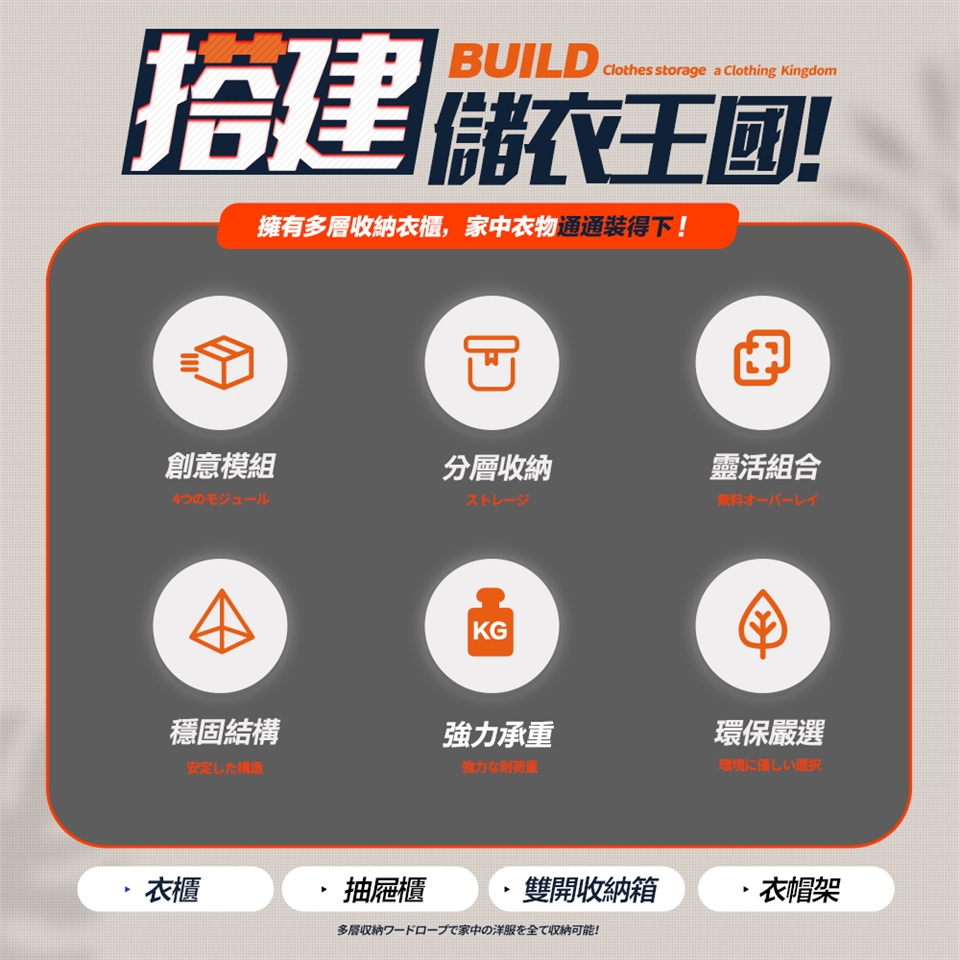■衣櫃模組-內建掛衣桿,可作為兒童衣櫃,亦可當作大型收納櫃。
