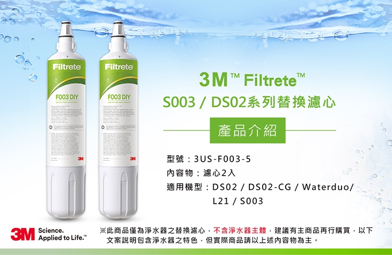 3M F003 DIY淨水器替換濾心兩入