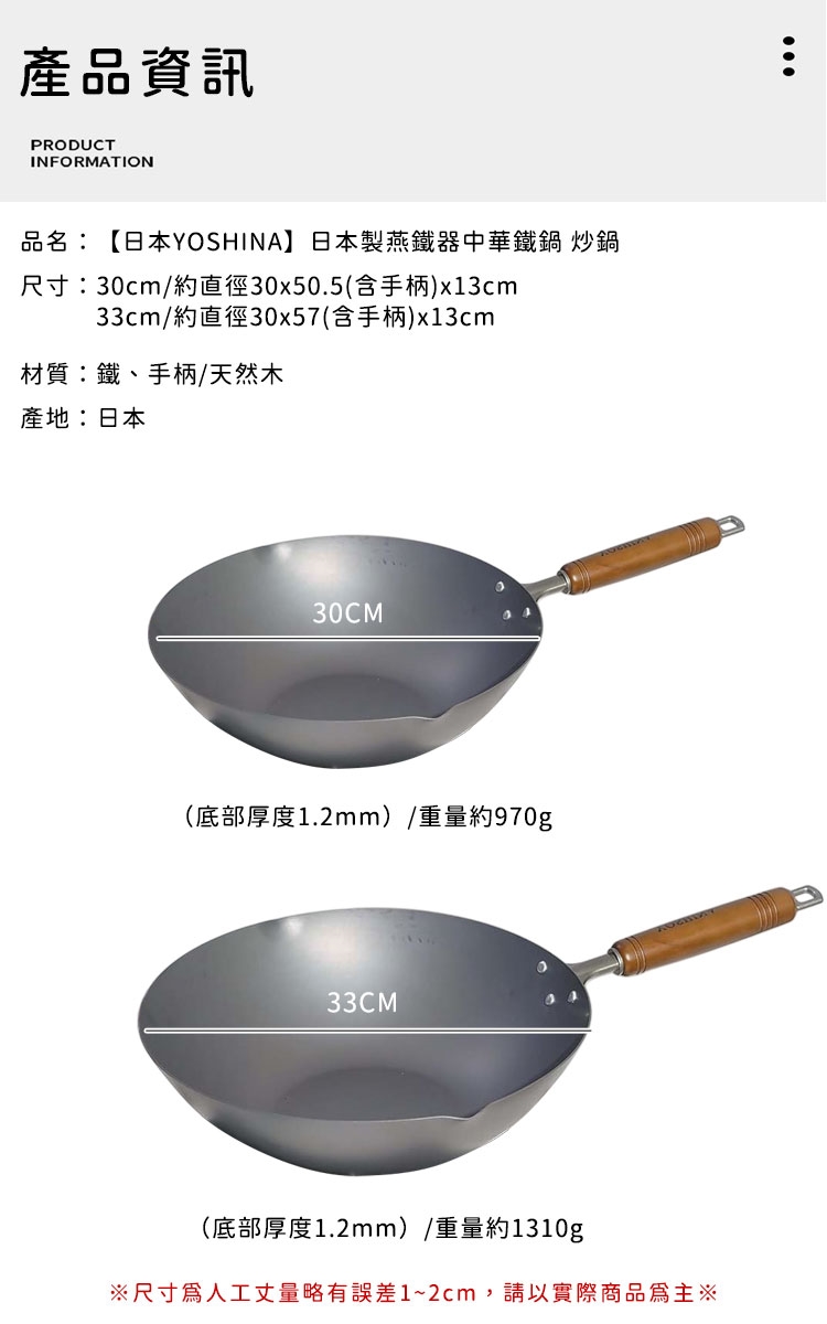 品名:【日本YOSHINA】日本製燕鐵器中華鐵鍋 炒鍋