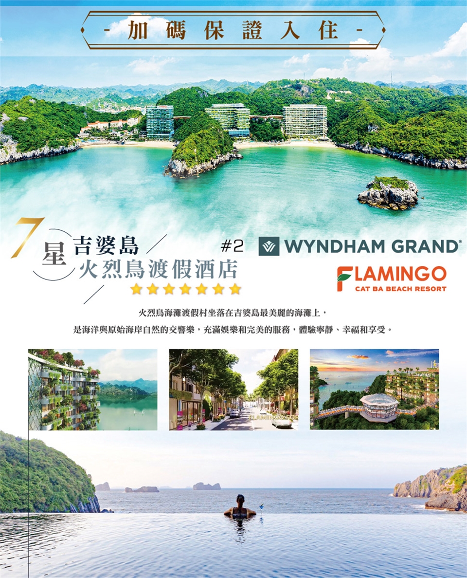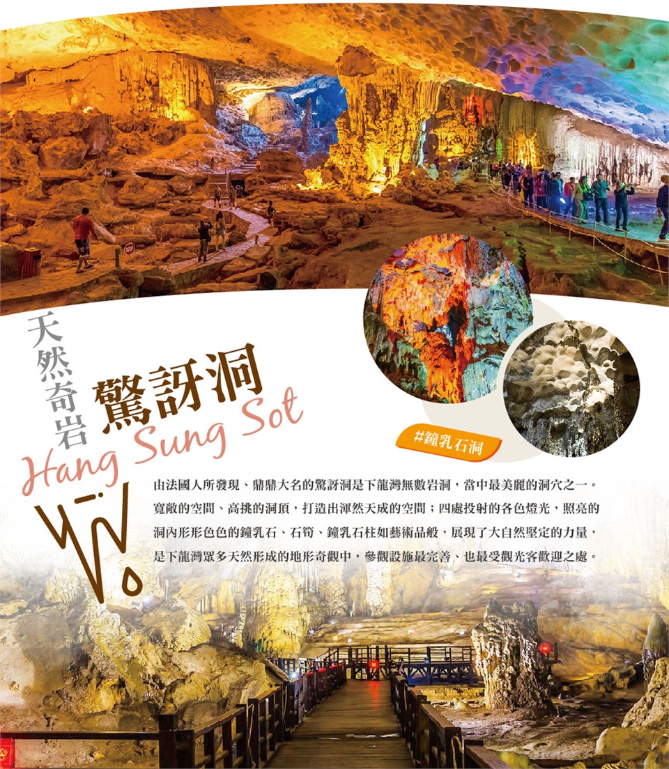 世界新七大奇景《海上桂林》之稱的【下龍灣】,特別安排暢遊秘境下龍灣中一望無際的千年島嶼,眾多島嶼與喀斯特石灰岩地形集成的天然奇景,大自然鬼斧神工的力量!【吉婆島】下龍灣最頂奢的度假島嶼,越南必去景點:驚訝洞、水上木偶戲、三十六古街,一起旅遊帶您一次看遍美不勝收的自然遺產。