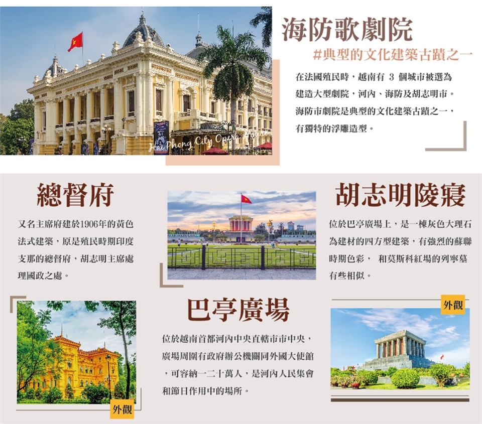 ▲以下景點請務必著過膝褲或裙,且不得著無袖上衣。因越南政府極力推廣旅遊,才開始有此規定。鎮國寺(拜佛之地);巴亭廣場(越南門面之處);胡志明故居(需尊敬之地)。
