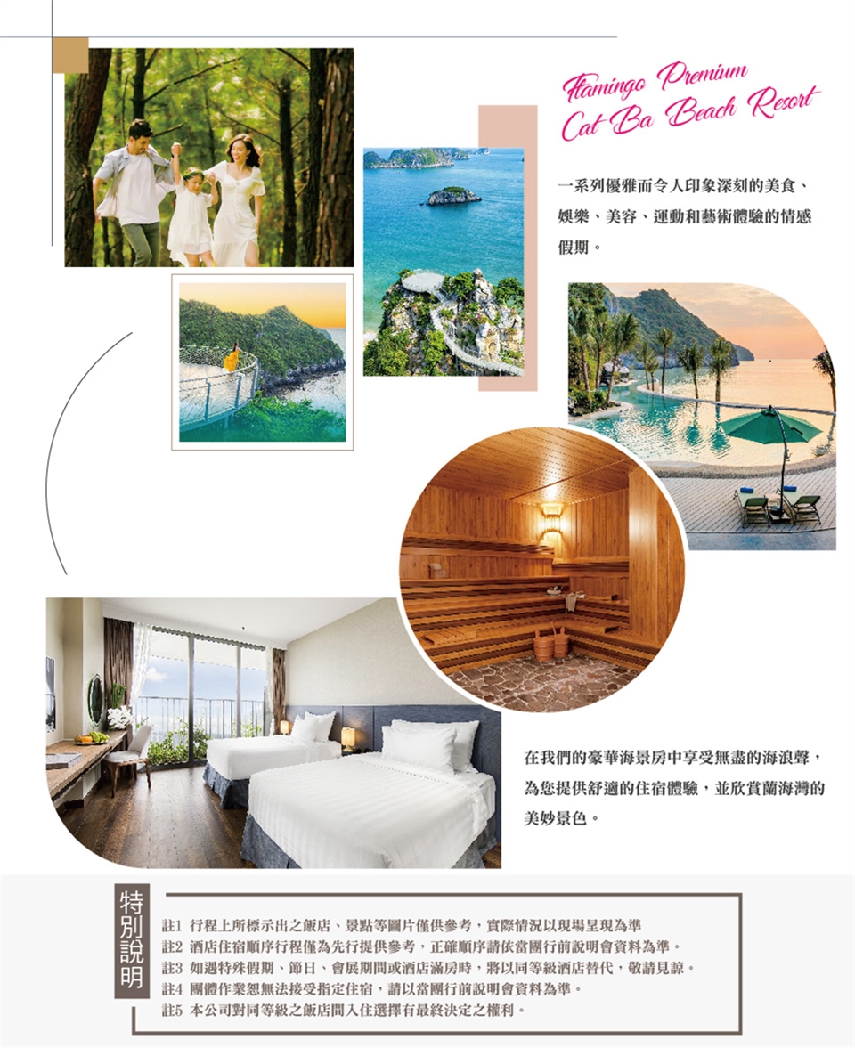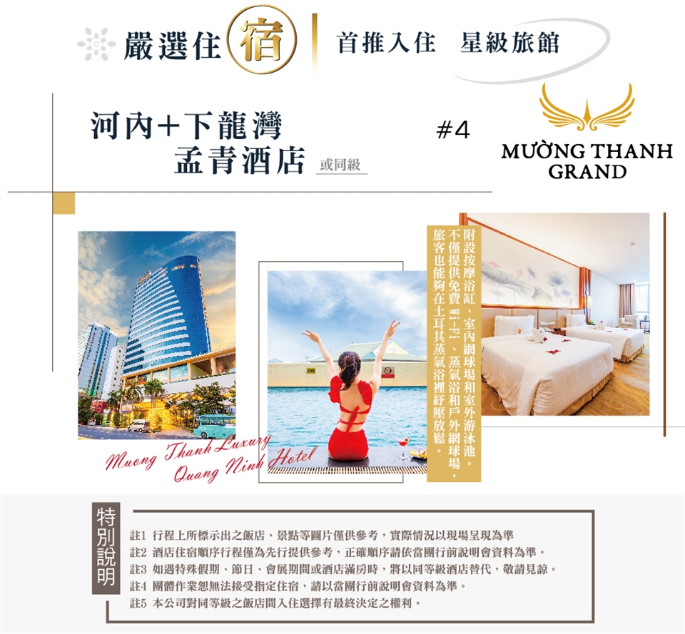 ‧指定單人房補價差(全程):NT$ 15000元/人(本套券所指住房皆為兩人一室)