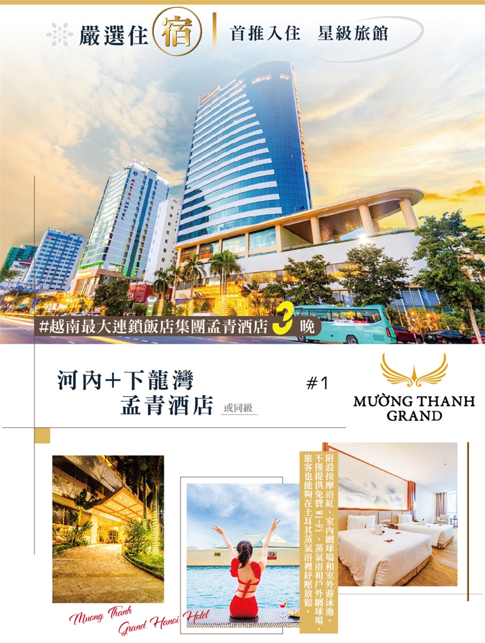 集合於桃園國際機場,搭乘豪華客機飛往越南河內國際機場,準備展開新的旅程。河內市是越南的首都,位於越南北部,紅河三角洲西北部,紅河右岸和紅河與天德江的匯流處,因處紅河與蘇瀝江之間而得名。 河內是越南的工業、文化中心,同時也是越南歷史上的古都,擁有1000多年歷史,從西元11世紀起就是越南北部的政治、經濟和文化中心,市區歷史文物豐富,名勝古跡遍佈。 住宿酒店:越南最大連鎖酒店集團孟青酒店Muong Thanh Grand Hanoi 或 同級 |
