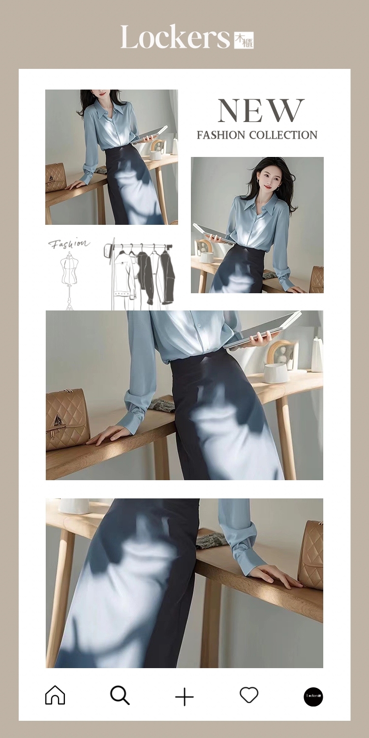 【Lockers 木櫃】通勤藍色襯衫裙套裝 L114100105