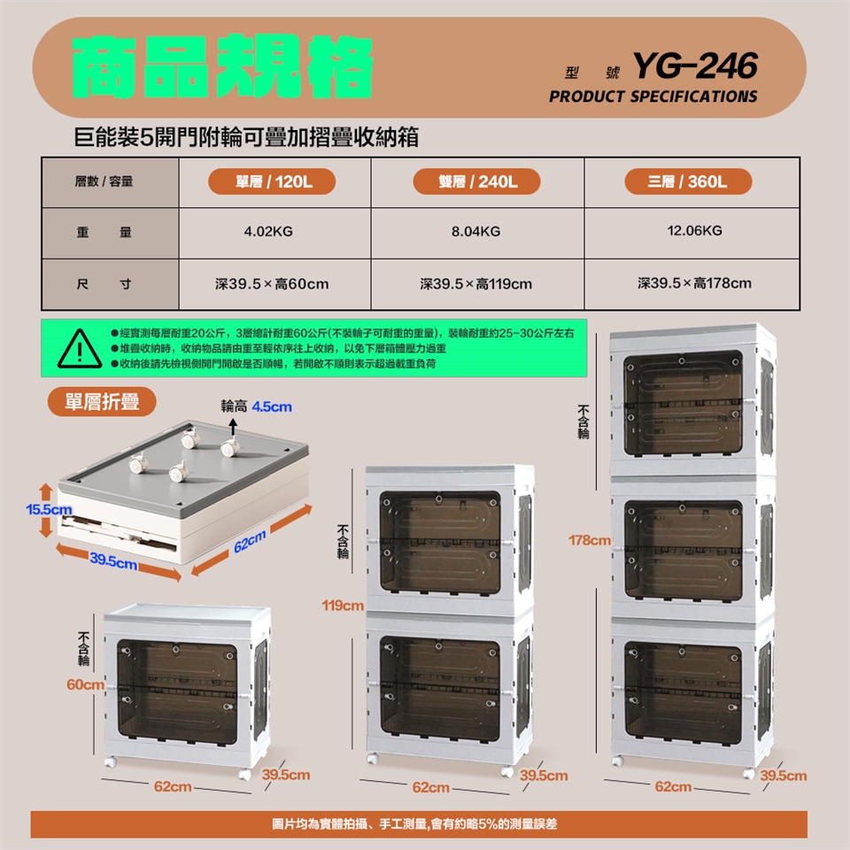 ●經實測每層耐重20公斤,3層總計耐重60公斤(不裝輪子可耐重的重量),裝輪耐重約25-30公斤左右