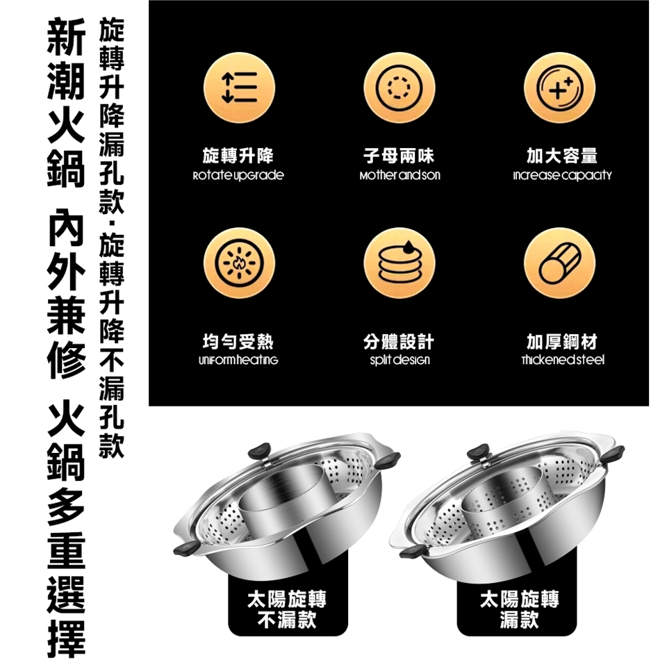 火鍋多重選擇:旋轉升降漏孔款/旋轉升降不漏孔款