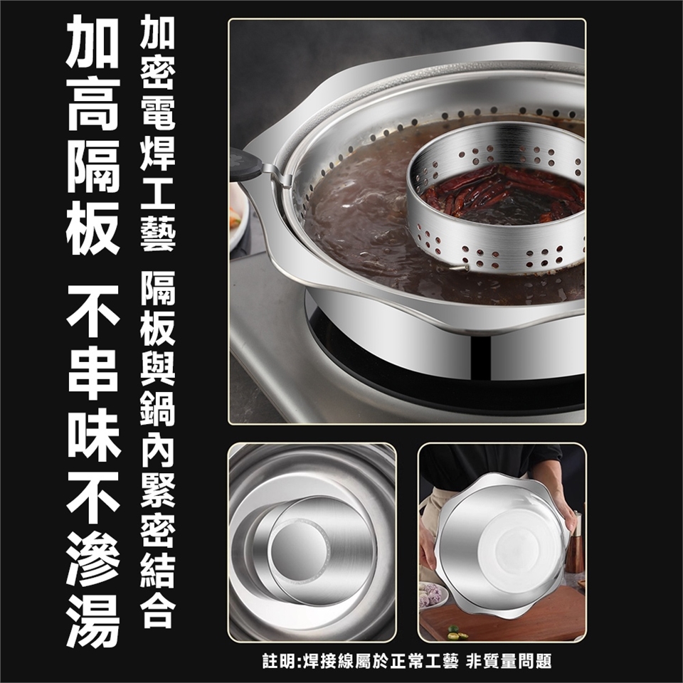 6.加高隔板不串味不滲湯:加密電焊工藝隔板與鍋內緊密結合