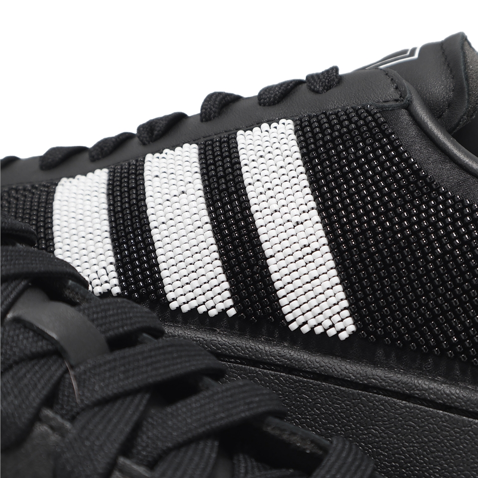 * 鞋面採皮革材質搭配側面串珠設計,搭配貝殼頭與三條紋點綴 LOGO,打造獨特穿搭風格。