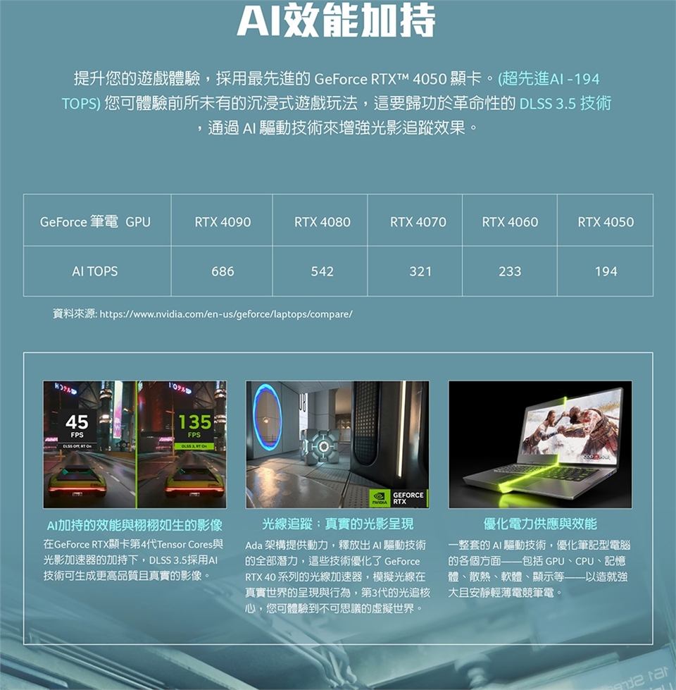 "顯示晶片:NVIDIA® GeForce RTX™ 4050