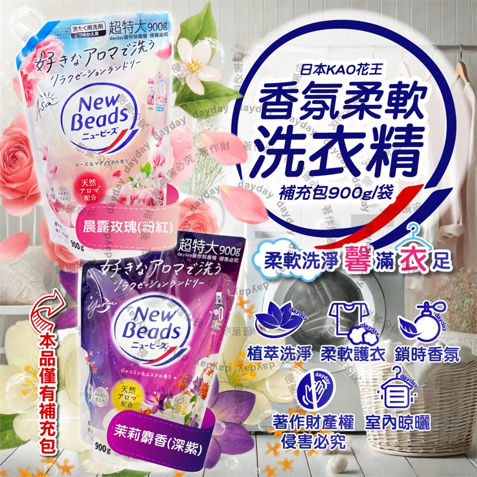 ●品名:New Beads植萃香氛精華消臭潔淨柔軟洗衣精補充包