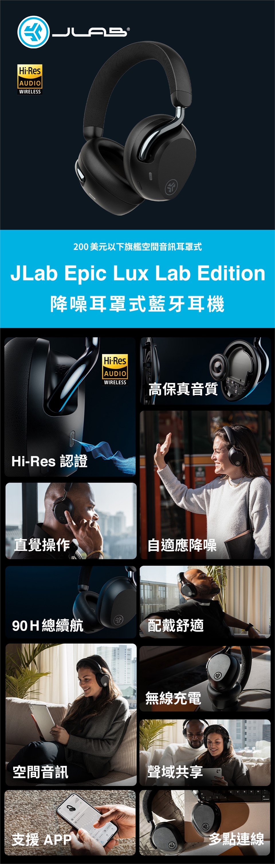 • JLab Epic Lux Lab Edition降噪耳罩式藍牙耳機