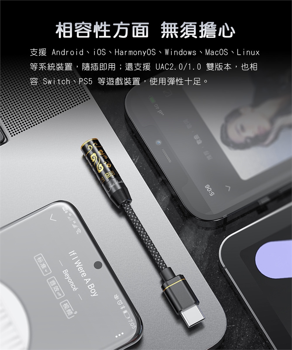 還支援 UAC2.0/1.0 雙版本,也相容 Switch、PS5 等遊戲裝置,使用彈性十足。