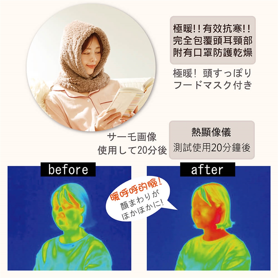 ◆ 節能省電暖房效果快,厚實絨毛蓬鬆柔軟,的包覆頭部,耳朵,頸部。
