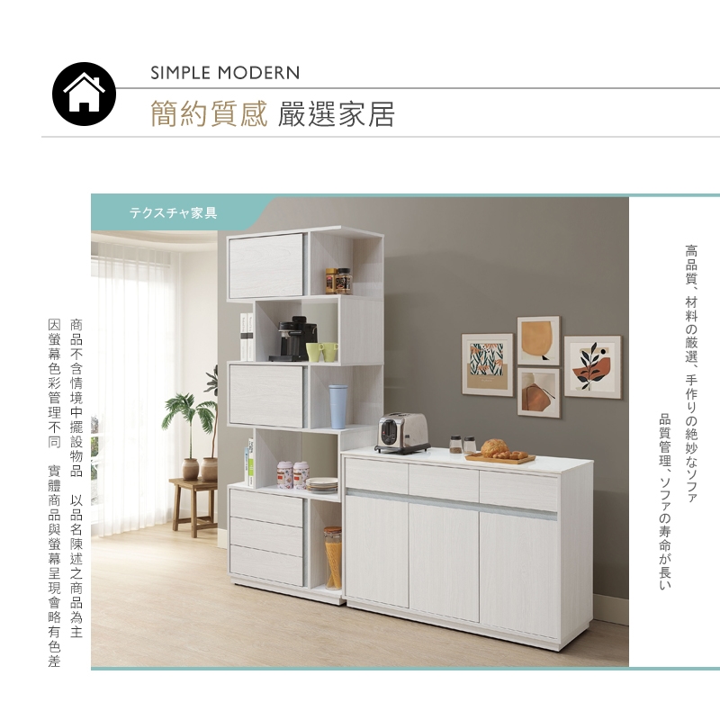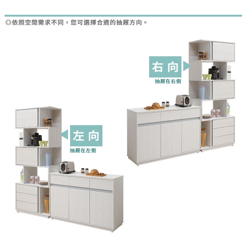(3)2.7尺高收納櫃抽屜區分左向、右向,您可依照空間需求不同,選擇合適的抽屜方向,