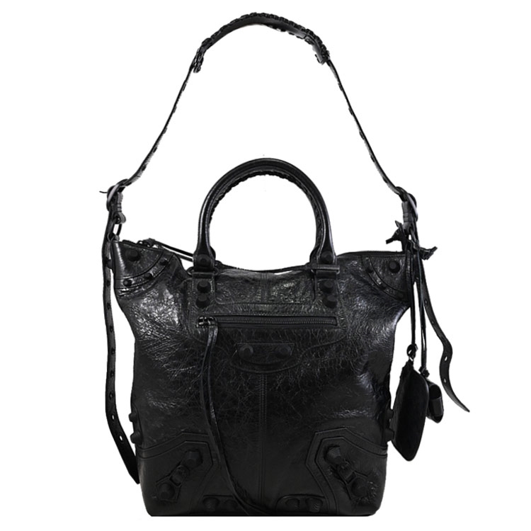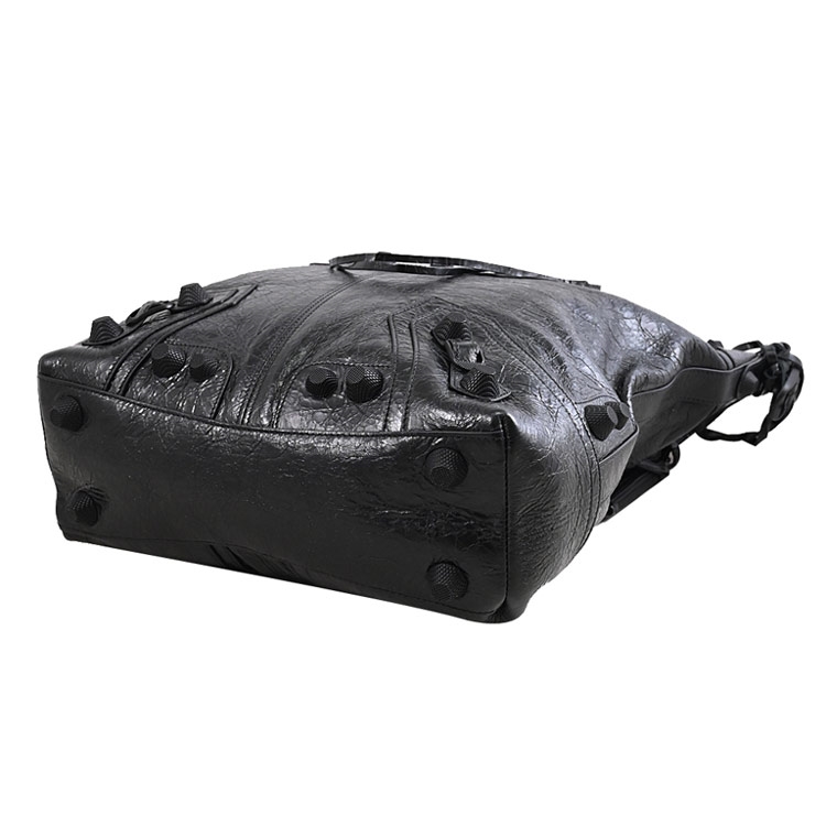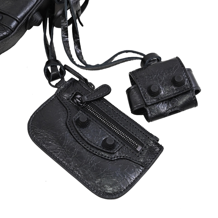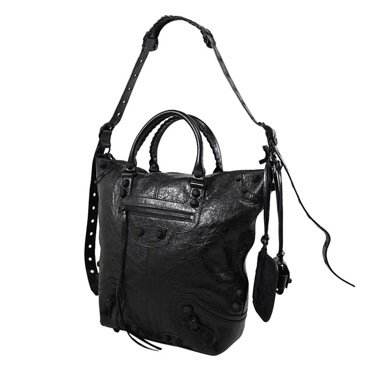 BALENCIAGA專櫃熱賣Le Cagole系列,採用質感小羊皮加上品牌經典鉚釘釦/內裡織布材質,拉鍊開口,內有1拉鍊袋+外2拉鍊袋供收納,內可放A4文件、iPad等隨身物品,附1可拆式airpods Pro耳機收納包+1可拆式零錢包,可斜背、側背或做手提包使用,外出皆方便的大包款。