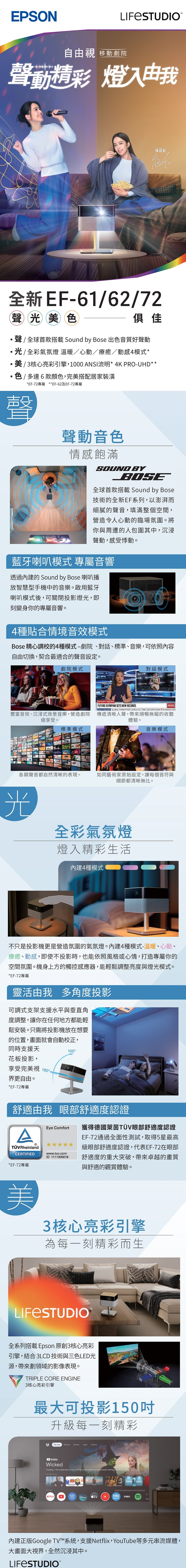 EPSON Lifestudio Pop Plus EF-62N LED智慧迷你投影機 爵士藍