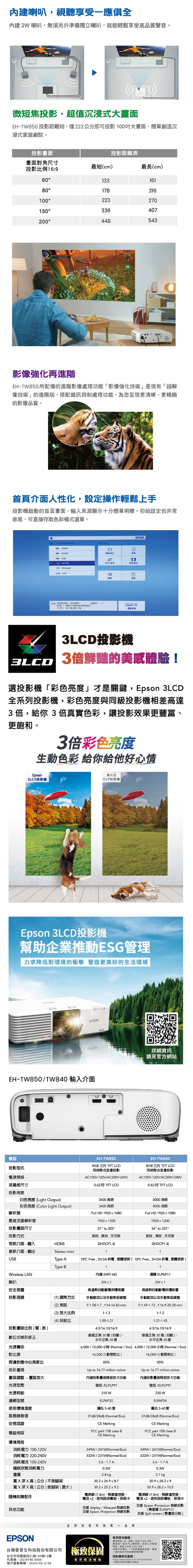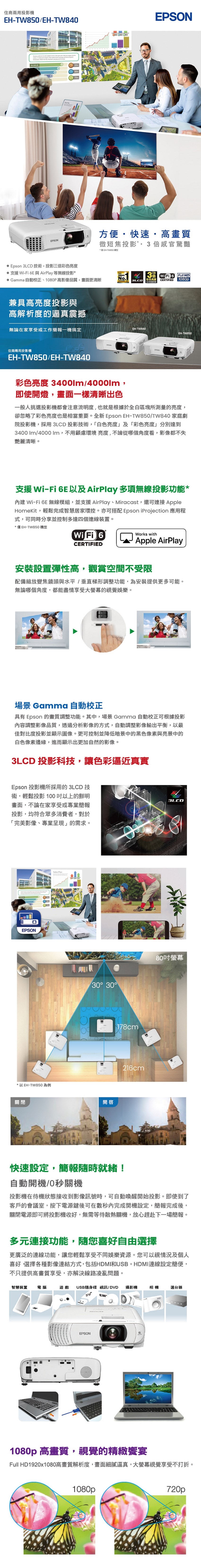 EPSON EH-TW850 跨界小霸王 住商兩用高亮彩投影機
