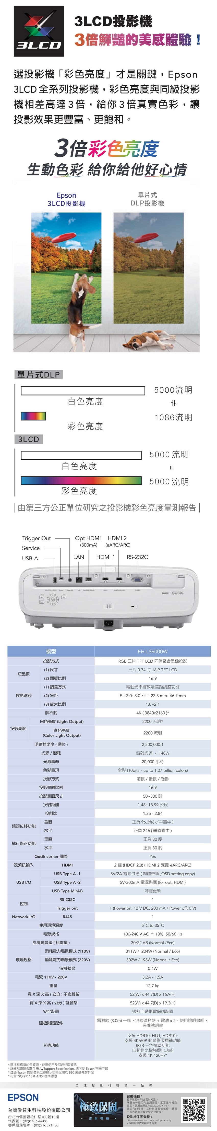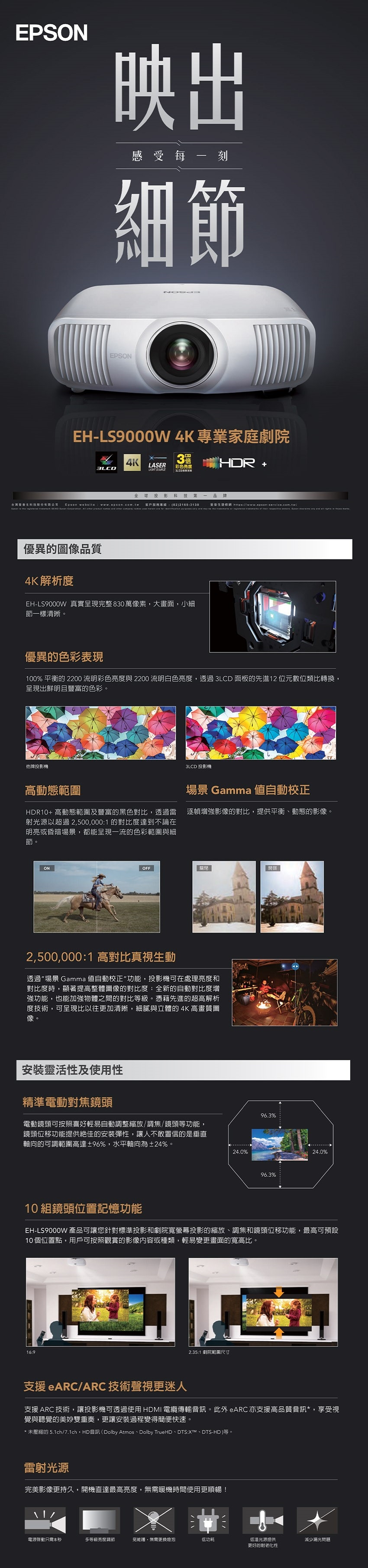 EPSON EH-LS9000W 4K雷射3LCD專業家庭劇院投影機