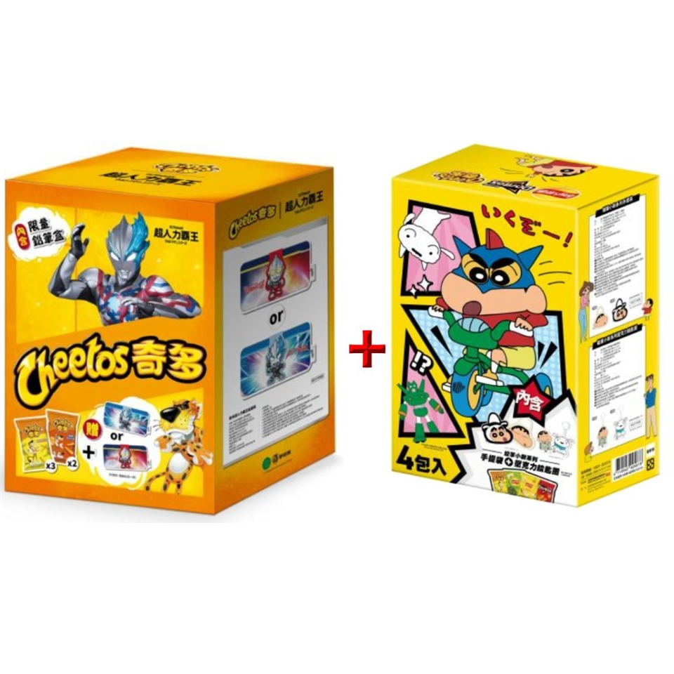 內容物:奇多家常起司78gX3包,奇多 2倍濃起司78gX2包,奇多超人力霸王鉛筆袋*1(二款隨機贈送一款)
