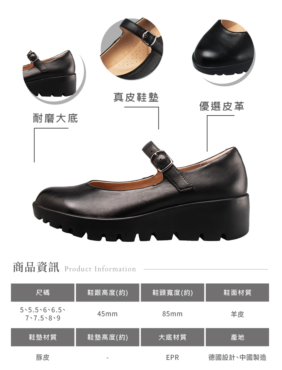 Kimo 氣質羊皮繫帶厚底瑪莉珍鞋 女鞋 (時尚黑 KBEWF145113)