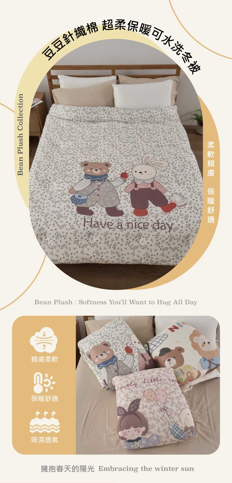 BELLE VIE 萌系夥伴 療癒豆豆絨針織可水洗冬被/安撫被 (150X200cm) 蓄熱保暖 / 全面包覆