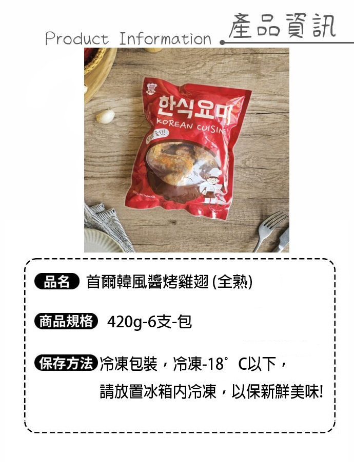 品名:首爾韓風醬烤雞翅 (全熟)