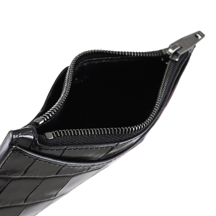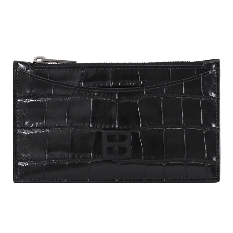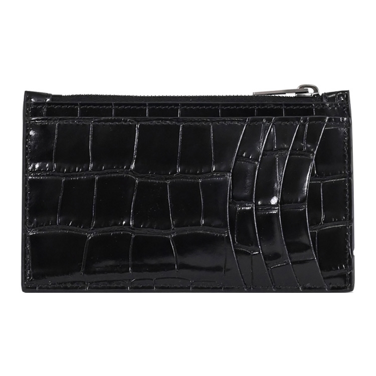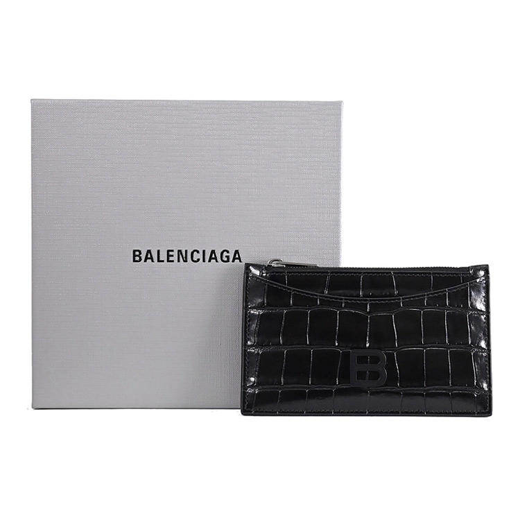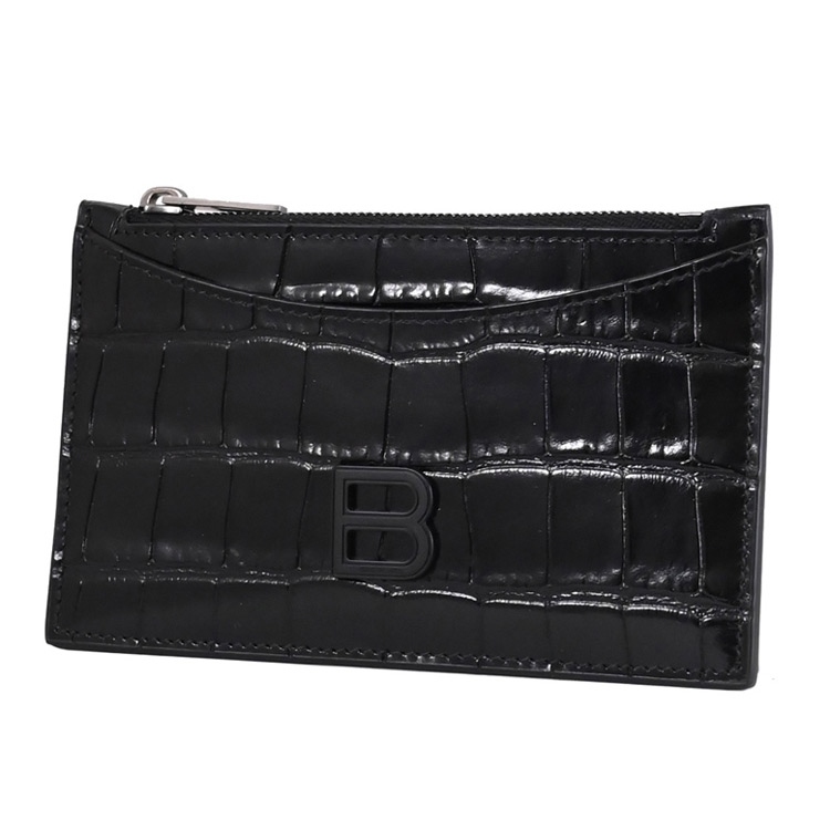 BALENCIAGA熱銷的證件卡片零錢包,採用質感鱷魚壓紋材質加上霧面黑金屬LOGO,拉鍊開口,外4卡夾層+2貼袋可供收納,精緻小巧可輕易放入各種小包,實用性設計便於攜帶。簡約高貴優雅,釋放出都會女仕優雅的時尚風格。