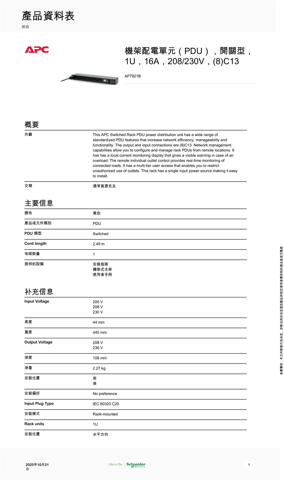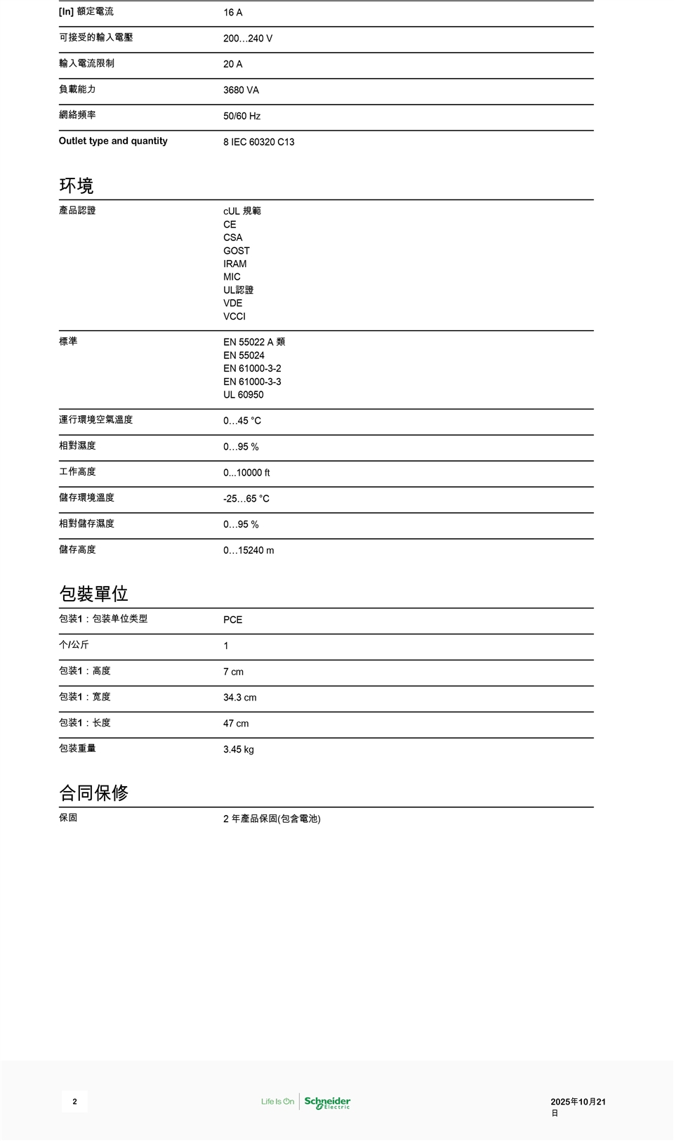 可接受的輸入電壓 200-240交流電壓 (VAC)