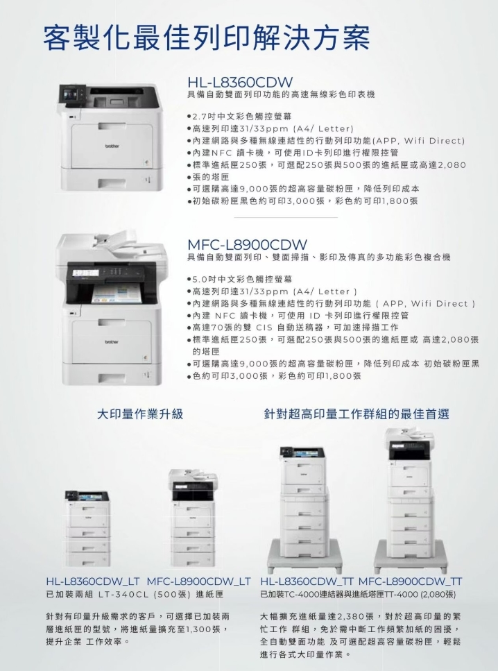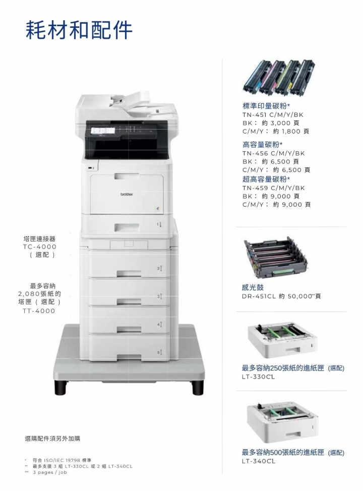 - 選購高容量碳粉匣。最多可列印 9000頁(黑色/彩色)*