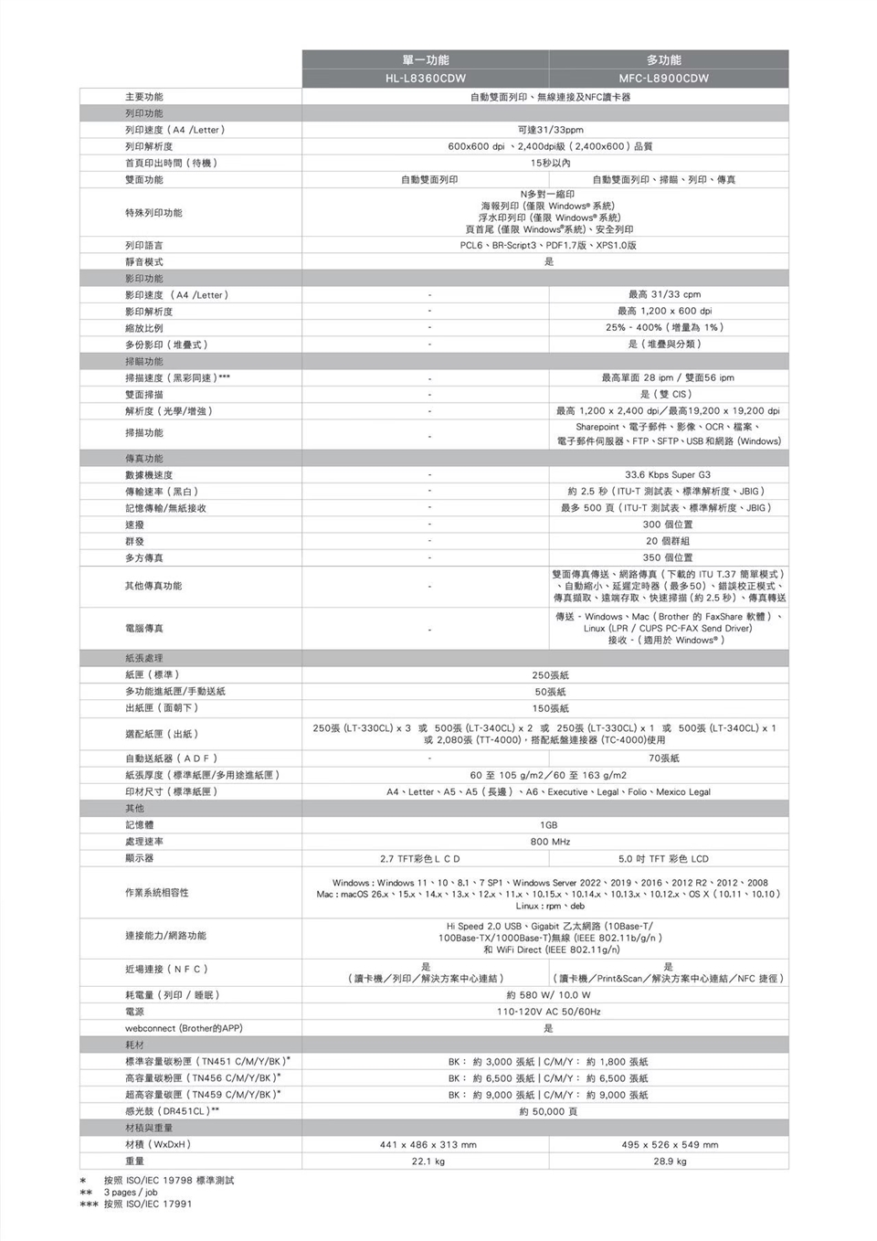 - A4 列印速度最高可達 31 頁/分 (黑色/彩色)