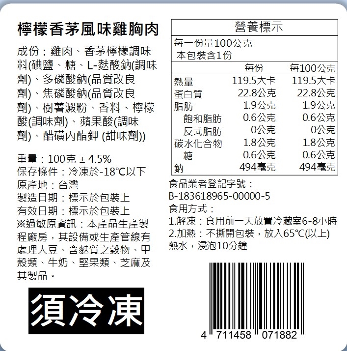 🔹每包蛋白質含有22g,熱量不超過135大卡