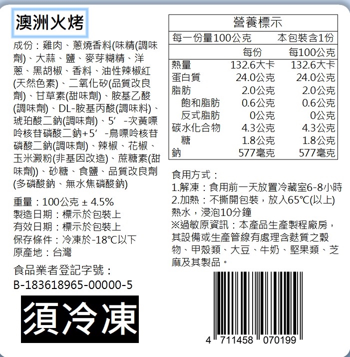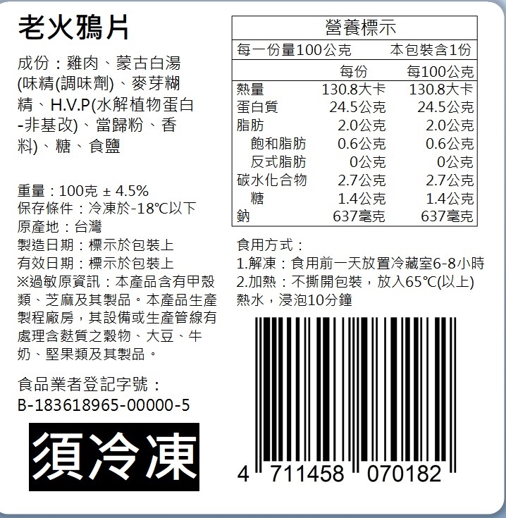 - 經典口味:台式三杯雞、澳洲火烤、老火鴉片 3款口味 各20包