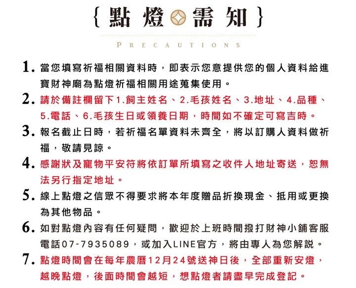 ※請於結帳時填,將點燈人資料『姓名、地址、出生年月日(農曆生日)』寫於「備註欄」內