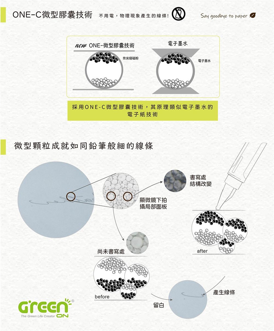 永久不用電的Green Board磁性電紙板,是高科技奈米級磁性電紙板電紙板。採用微型磁粉顆粒技術,類電子墨水的電子紙技術,運用此原理來穩定顯示如鉛筆般的書寫線條。