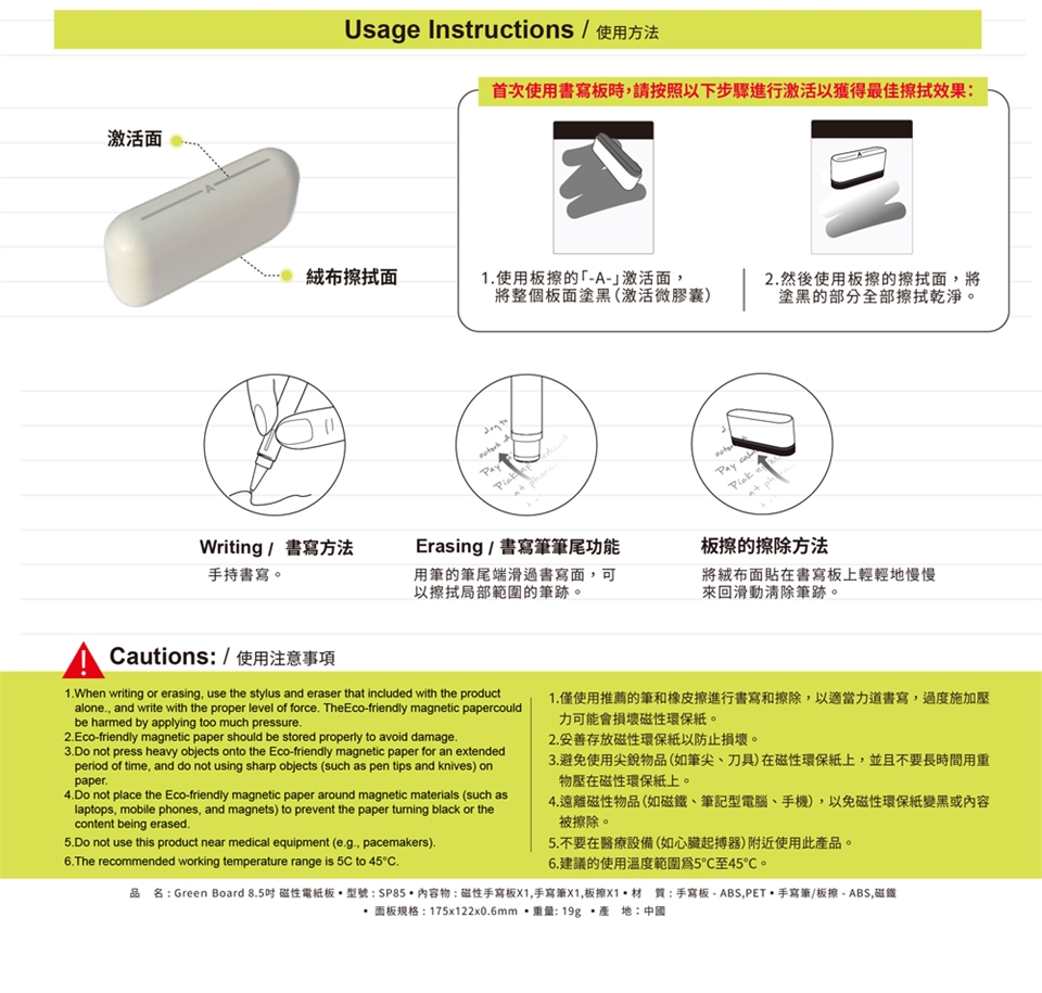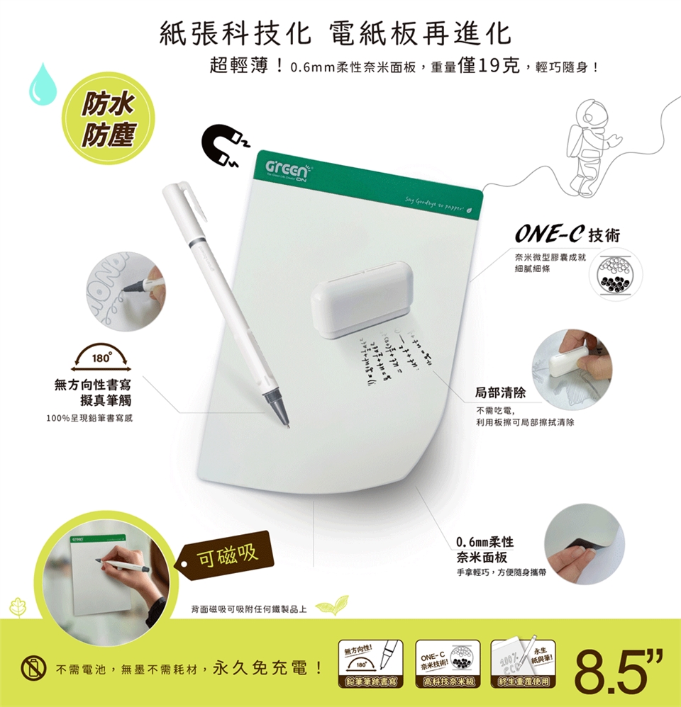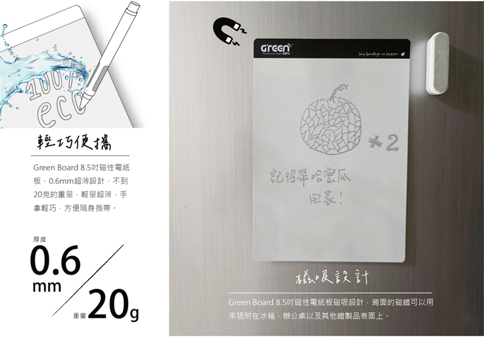 - 產品名稱: Green Board 8.5吋 磁性電紙板