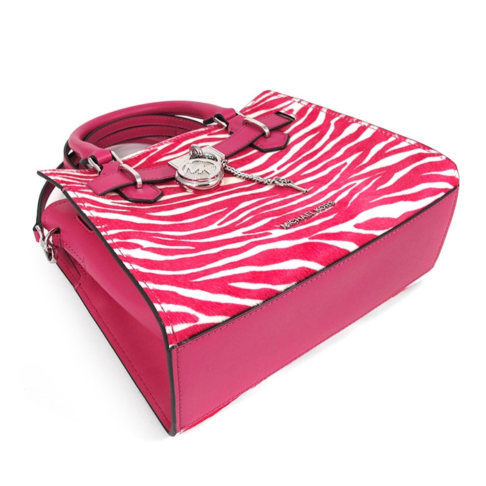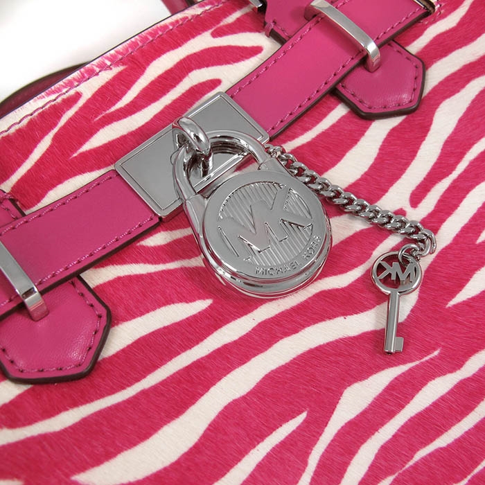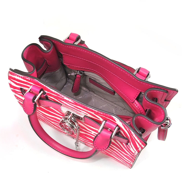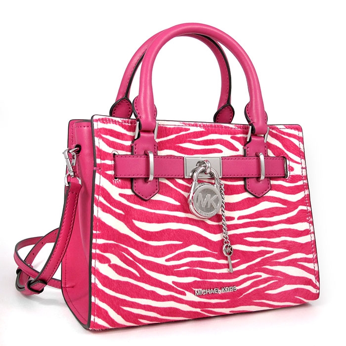 MICHAEL KORS HAMILTON 銀字LOGO粉白雙色鎖頭兩用包。包款有一拉鍊袋。搭配可拆卸式可調背帶長短做肩斜使用,貼心設計不論是上班或出遊,是您不可或缺的實用包款!