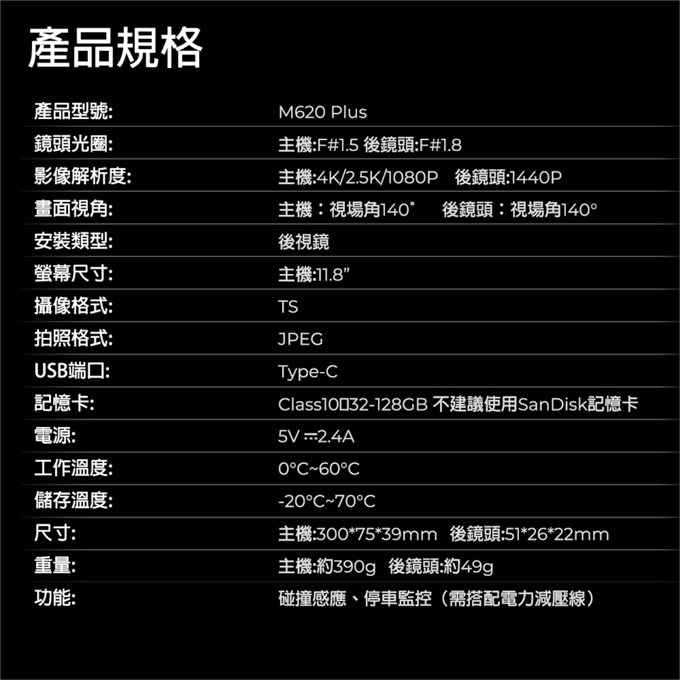 🔸 140度前後大廣角,行車更安全
