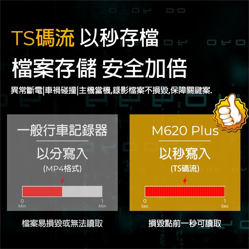 🔸 TS碼流已秒存檔,錄影檔案不損毀