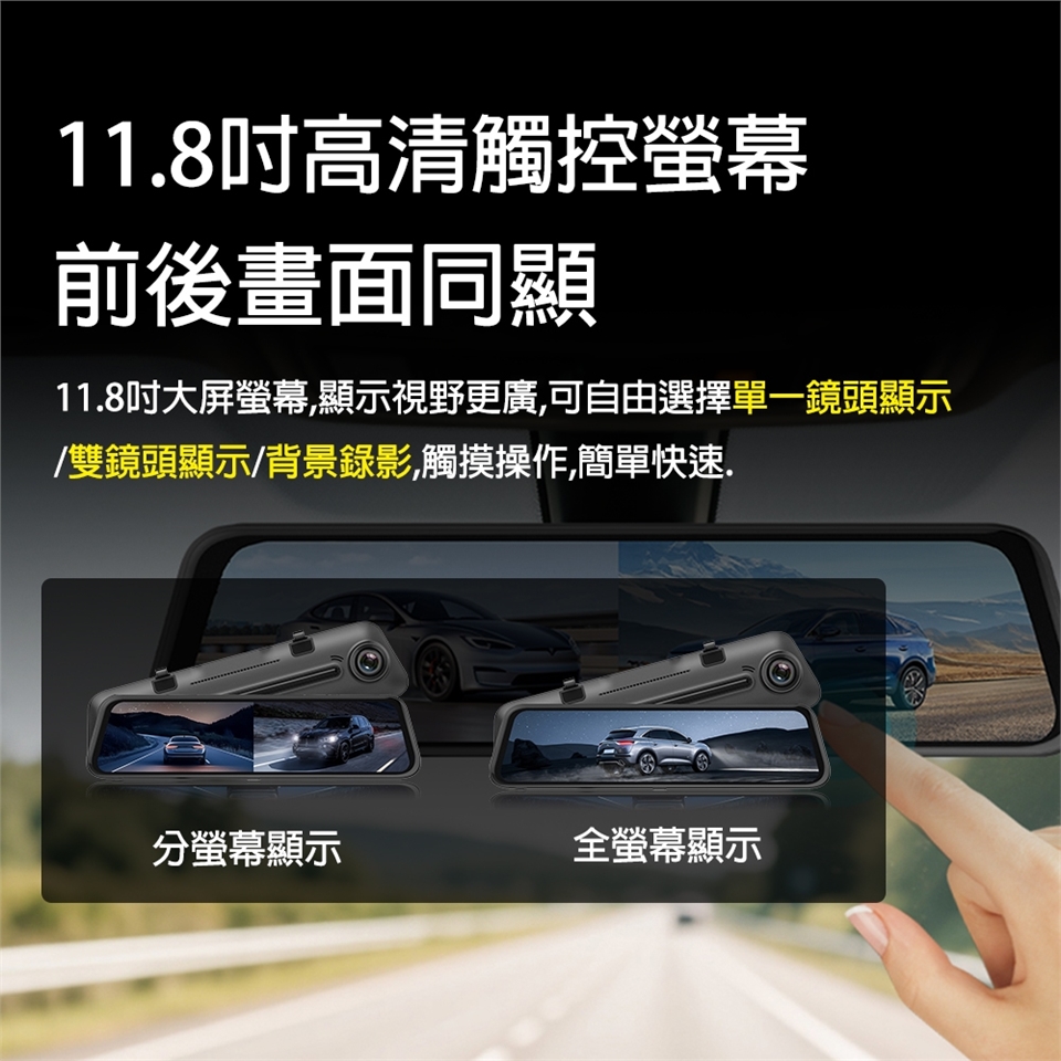🔸 11.8吋2.5D高清觸控大螢幕,前後畫面同顯