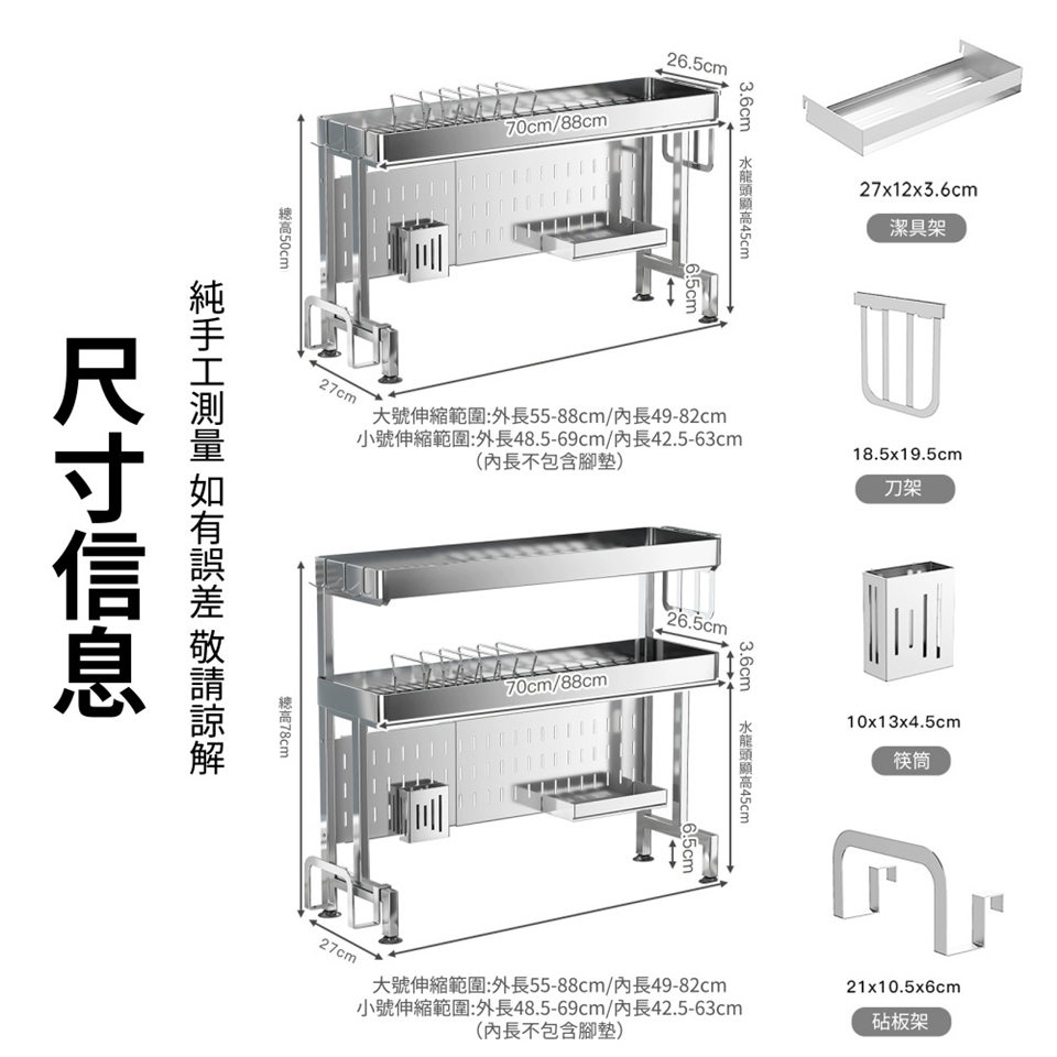 支架伸縮距離:小號48.5-69公分/大號53-86公分