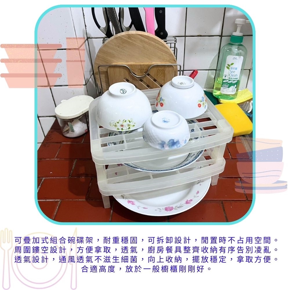 可疊加式組合碗碟架,耐重穩固,可拆卸設計,閒置時不占用空間。