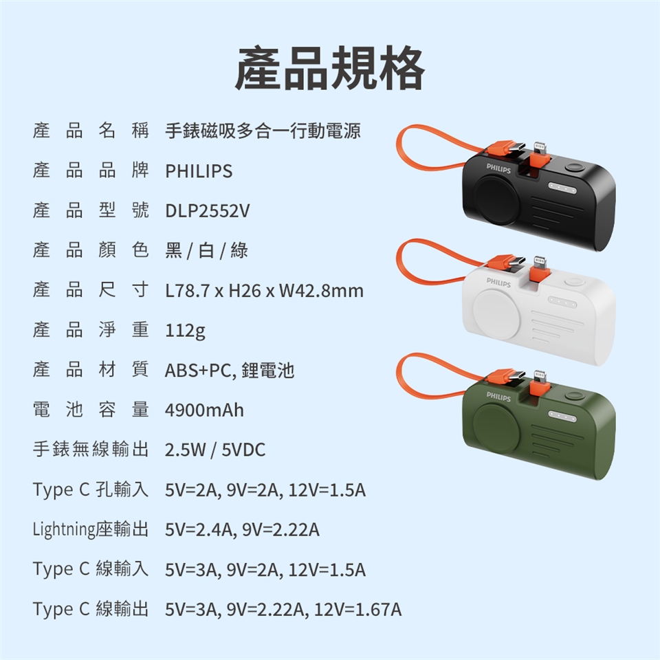 USB-C線輸出 : 5V 3A, 9V 2.22A, 12V 1.67A